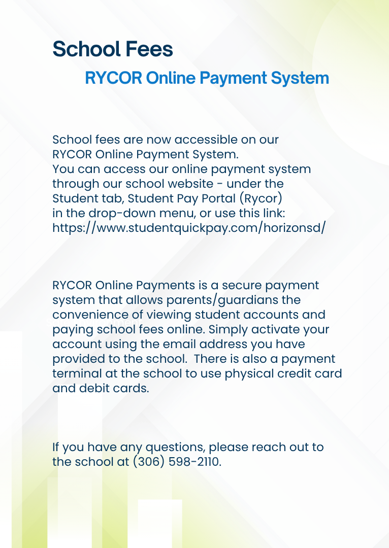 If you have any questions, please reach out to the school at (306) 598-2110.